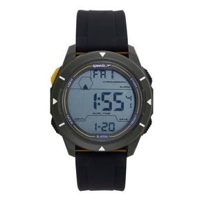 Características: com caixa em Policarbonato Verde e pulseira em Silicone Preto/Laranja