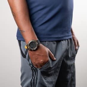 Funções: digital, iluminação, alarme, cronógrafo, timer, dual time Resistência à água: 50 m Diâmetro da caixa: 47 mm Características: com caixa em policarbonato verde e pulseira em silicone preto/laranja Fundo parafusado Vidro: acrílico Aro fixo verde Alimentação do maquinário: bateria Garantia de 1 ano