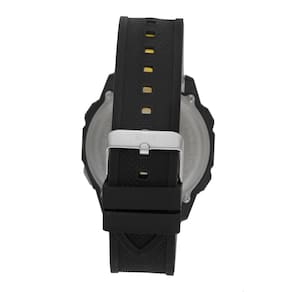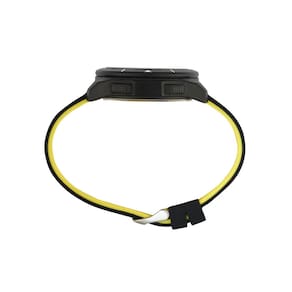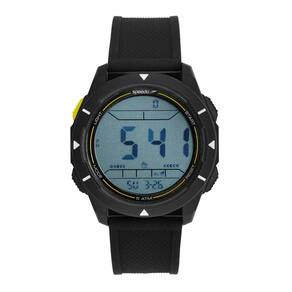 Características: com caixa em Policarbonato Preto e pulseira em Silicone Preto/Amarelo