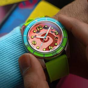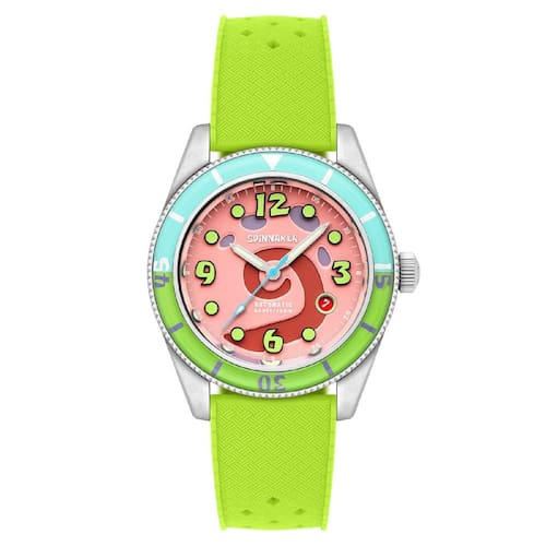 Relógio Spinnaker Fleuss Bob Esponja Pink Gary Limited Edition SP-5151-01 Ilumine suas aventuras com relógios Spinnaker Projetados para o mergulhador e aventureiro ávido, nossos relógios apresentam luminescência radiante que garante uma legibilidade clara nas profundezas mais escuras e em condições de pouca luz. Seja explorando reinos subaquáticos ou navegando em aventuras noturnas, os mostradores e ponteiros luminosos do Spinnaker fornecem o brilho de que você precisa para permanecer no curso. Especificações Técnicas Mecanismo: Seiko NH35 Automático Reserva de energia de mais de 41 horas, com 24 joias Material da caixa: Aço Inoxidável Diâmetro da Caixa: 43mm Expessura da Caixa: 13mm Lug to Lug: 51mm Indice e Luminoso: Índice aplicado com Swiss Super Luminova Lente: Lente de safira com revestimento anti-reflexo Moldura: moldura bidirecional com vidro Cor do Mostrador: Rosa Pulseira: pulseira de silicone cor verde de 22mm Funções: aro rotativo bidirecional e calendário Resistência à água: 150m : internacional de 2 anos. Marca: Não Informado