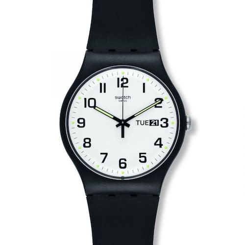 Caixa em Plástico Preto - Redondo - Analógico - Pulseira em Silicone Preto - Mostrador Branco Com Detalhes em Preto - Ponteiros Luminosos - Calendário Dia da Semana e Dia do Mês - Tipo de Vidro: Acrílico - Resistente à Água: 30m - Garantia de dois anos