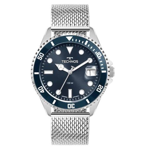 Relógio Technos Acqua 2415DY/1A Masculino Relógio Technos Acqua apresenta mostrador analógico com data na posição de 3 horas na cor azul, lupa de calendário e lente antireflexo, além de contar com marcadores de hora luminescentes, aro giratório unidirecional com aplicação de cor e coroa rosqueada para auxiliar em aventuras submersas, com resistência à água de até 150 metros. Produto 100% em aço inoxidável, banhado em prata, com pulseira de aço inoxidável em mesh. Especificações Técnicas Mecanismo: Máquina Quartz Japonesa Miyota Gênero: Masculino Visor: Azul Vidro: Cristal Mineral Funções: Vidro com Lupa de calendário Prova d'água: 150m Características: Com caixa e pulseira em aço inoxidável Diâmetro da caixa: 45 mm38 : 1 ano pelo fabricante Technos Normal 0 21 False False False PT-BR X-NONE X-NONE / Style Definitions / Table.Msonormaltable mso-style-name:tabela normal; Mso-tstyle-rowband-size:0; Mso-tstyle-colband-size:0; Mso-style-noshow:yes; Mso-style-priority:99; Mso-style-parent:; Mso-padding-alt:0cm 5.4pt 0cm 5.4pt; Mso-para-margin-top:0cm; Mso-para-margin-right:0cm; Mso-para-margin-bottom:8.0pt; Mso-para-margin-left:0cm; Line-height:107%; Mso-pagination:widow-orphan; Font-size:11.0pt; Font-family:calibri,sans-serif; Mso-ascii-font-family:calibri; Mso-ascii-theme-font:minor-latin; Mso-hansi-font-family:calibri; Mso-hansi-theme-font:minor-latin; Mso-bidi-font-family:times New Roman; Mso-bidi-theme-font:minor-bidi; Mso-fareast-language:en-us; Marca: Não Informado