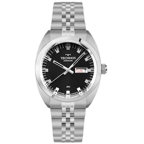 Mecanismo: Automático - Miyota com 21 Jewels - Reserva de marcha de 42h. Gênero: Masculino Visor: Preto Vidro: Cristal Mineral Funções: Calendário day-date, case back transparente Prova d'água: 50m Características: Com caixa e pulseira em aço inoxidável Diâmetro da caixa: 40 mm Garantia: 1 ano pelo fabricante Technos