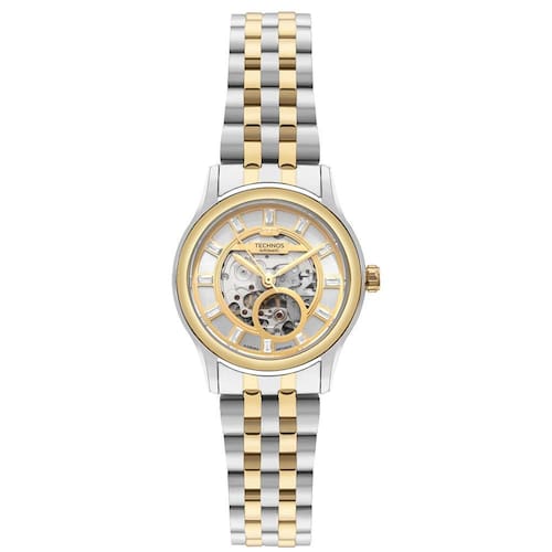 O Technos Automático Skeleton 6T28AA/1K é uma peça que traduz a essência da relojoaria mecânica em um design sofisticado e contemporâneo. Seu grande destaque está no mostrador skeleton, que revela o funcionamento interno do mecanismo, permitindo apreciar cada detalhe da engenharia do tempo em movimento.