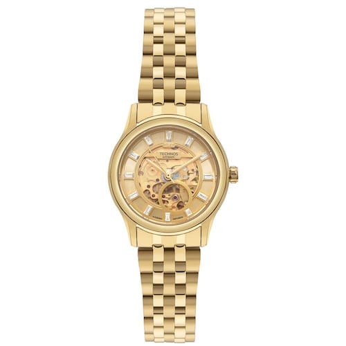 O Technos Automático Skeleton 6T28AB/1X é a expressão máxima de sofisticação para quem valoriza design marcante aliado à tradição da relojoaria mecânica. Com visual totalmente dourado, o modelo transmite elegância e presença, destacando-se como uma peça de alto impacto no pulso.