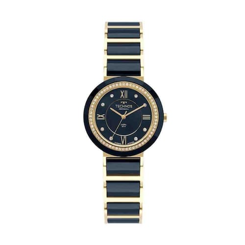 Estamos há mais de 50 anos no mercado oferecendo uma ampla variedade de acessórios, incluindo relógios e óculos de sol, com as melhores marcas e estilos. Além disso, a nossa equipe é treinada para oferecer um atendimento excepcional, garantindo que cada cliente seja tratado com o respeito e a atenção que merece.Realizando a compra, não deixe de nos avaliar Sua opinião é muito importante para aperfeiçoar cada vez mais o nosso trabalho.ESPECIFICAÇÕES TÉCNICAS- Marca: Technos - Referência: 2036MRP/1A- Gênero: Feminino - Tipo de mostrador: Analógico- Tipo de movimento: Quartz - Função: Hora - Cor da caixa: Dourado e Azul - Cor do mostrador: Azul - Cor da pulseira: Dourado e Azul - Material da caixa: Aço- Material da pulseira: Cerâmica- Largura da caixa: 3 cm - Espessura da caixa: 1 cm - Resistência à água: 5 ATM 50m - : 12 meses