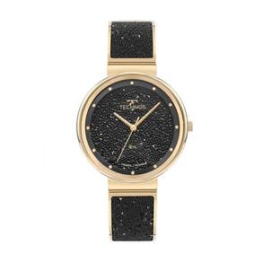 Relógio Technos Crystal com estética diferenciada, inspirada no design único das joias. O modelo dourado conta com a extraordinária aplicação de malha de cristais austríacos de cor preta no mostrador e em sua inédita pulseira, além da delicada marcação de horas no aro interno. Produto 100% em aço inoxidável, com máquina quartz Japonesa Miyota e resistência à água de 50m. Tamanho de caixa 36mm.