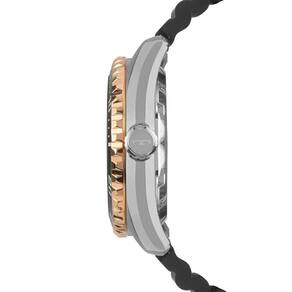 Relógio Technos Masculino Automático Bicolor - 8205PB/2P Relógio Automático Diver apresenta o clássico design de mergulho, inspirado nos modelos lançados pela Technos na década de 70, que fizeram história no Brasil. Ele conta com a precisão do maquinismo automático japonês Miyota, com 21 jewels e reserva de marcha de 42 horas, além da presença do calendário day-date e fundo de vidro rosqueado, que permite a visualização do movimento mecânico das engrenagens. O modelo também apresenta elementos fundamentais para aventuras submersas, como o aro externo giratório unidirecional com acabamento corrugado, pulseira de silicone e mostrador na cor preto com efeito luminescente nos ponteiros e marcadores de hora, além dos marcadores de hora em formas geométricas, fator que facilita a leitura das horas. Seu sistema de impermeabilização é configurado pela tripla vedação na coroa e botões de acionamento, além da coroa ser rosqueada para oferecer ainda mais segurança ao mergulhar. Produto 100% em aço inoxidável, com maquinismo automático japonês Miyota, tamanho de caixa 43mm e resistência à água de 150 metros. Acompanha estojo especial. Marca: Não Informado Ean: 7891530878077