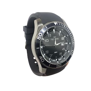 Cor da Correia: Preta Material da correia: Silicone Cor da Caixa: Prateada Material da Caixa: Aço Inoxidável Quantidade de Ponteiros: 3 Marcador de dias da Semana: Sim Resistência a água: 50M Tipo da marcação: Analógica