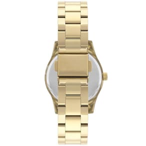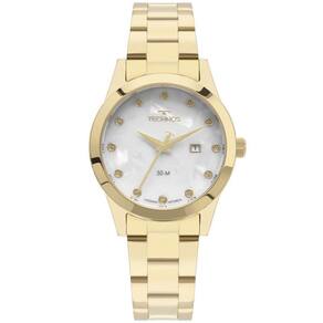 Descrição do Produto: Caixa de Aço Inox Pulseira de Aço Inox Fundo de Pressão Resistente à Água 5 Atm Diâmetro / Largura da Caixa: 32.00 MM Vidro de Cristal Mineral Funções: Analógico, Calendário Maquina Japonesa Alimentação do Maquinário: Bateria Mostrador Madreperola Branca com pedras