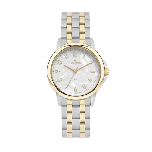Relógio Technos Feminino Ref: 2035mxf/1b Elegance Bicolor Descrição do Produto:Caixa de Aço Inox Pulseira de Aço Inox Fundo de Pressão Resistente à Água 5 Atm Diâmetro / Largura da Caixa: 32.00 MM Vidro de Cristal Mineral Funções: Analógico Maquina Japonesa Alimentação do Maquinário: Bateria Mostrador Madeperola branca com todos os números Prateado com Dourado Garantia de 1 Ano