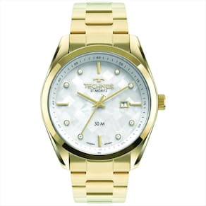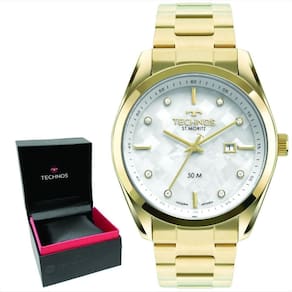 Prezado Cliente, nós da Relogios S.A. Todos os nossos produtos possuem assistência técnica em todo o Brasil. Quaisquer perguntas e dúvidas, teremos o maior prazer em atendê-los. Aqui na Relógios S.A., você terá as melhores condições para a sua compra: Certeza de um produto ; Nossos relógios são totalmente revisados antes do embarque, por uma equipe especializada; por 12 meses contra defeito de fabricação diretamente com o fabricante; Sobre o Relógio Parabéns, foi uma ótima escolha Vou te contar um pouco mais sobre ele. Esse relógio é um Technos St. Moritz feminino muito elegante, com caixa e pulseira em aço na cor dourada. Modelo clássico com fundo de madrepérola com cristais Especificação Técnicas: Tamanho da Caixa: 42 mm Espessura da Caixa: 10 mm Largura da Pulseira: 20 mm Vidro: Cristal Mineral Peso Aproximado: 121 g Material da Caixa: Aço Inox Material da Pulseira: Aço Inox Mecanismo: Analógico Calendário: Sim Resistência a Água: Sim, 5 ATM : 1 Ano Acompanha: Manual Em Português Cerificado De Estojo do fabricante Marca: Não Informado