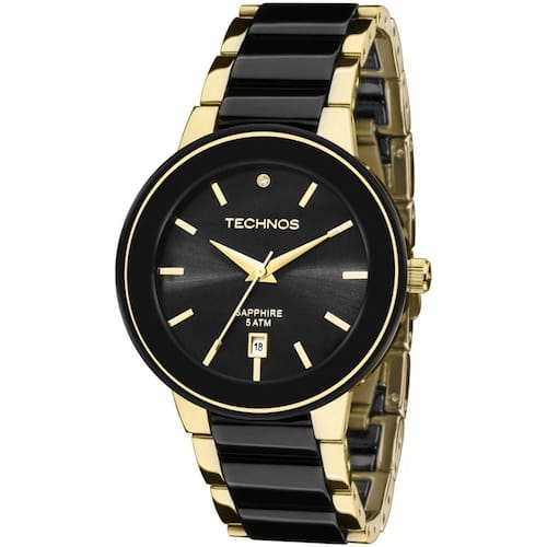 meli_title - Relógio Feminino Technos Ceramica E Safira Preto E Dourado