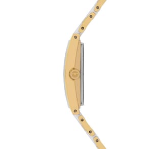 Seu design retangular traz um toque contemporâneo e minimalista, enquanto o mostrador clean com marcadores em destaque adiciona elegância e fácil leitura das horas. Os pontos luminosos que remetem a pedras elevam o nível de sofisticação do modelo, tornando-o uma peça marcante e refinada.