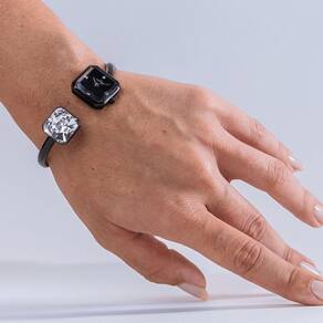 A linha Technos Crystal revoluciona a relojoaria tradicional para apresentar um novo clássico contemporâneo. Sua nova pulseira estruturada em forma de bracelete apresenta um design moderno e inovador, enquanto oferece um encaixe único no pulso. Em uma extremidade, o bracelete é adornado por um autêntico cristal solitário de origem austríaca, que reflete toda sua preciosidade. Ele é complementado pela delicada caixa com vidro facetado e mostrador de design minimalista, que possui pequenos cristais aplicados nas posições de 3/6/9/12 horas. Produto 100% em aço inoxidável em banho preto, com resistência à água de 50 metros. Tamanho de caixa 20mm.