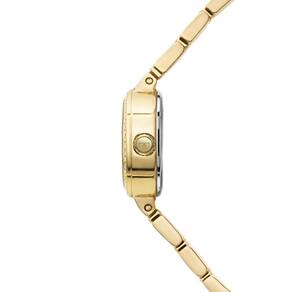 Seu design combina elementos clássicos e refinados, com destaque para o mostrador com numeração romana, que reforça a estética atemporal da peça. O aro com aplicação de pedras traz brilho na medida certa, elevando o nível de sofisticação sem exageros, ideal tanto para ocasiões especiais quanto para composições mais elegantes no dia a dia.