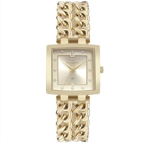 O Relógio Technos Feminino Elos Dourado - 2035MWJ/1X traz um visual impactante que combina elegância com presença marcante. Sua caixa quadrada de 30 mm e mostrador dourado com marcadores de cristais conferem charme e sofisticação na medida certa.