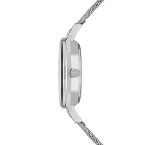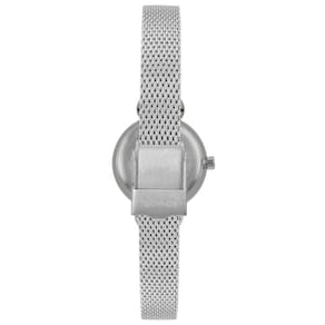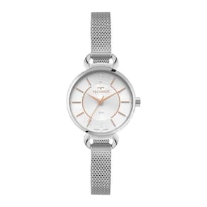 Relógio Mini apresenta seu novo modelo, com mostrador texturizado. Apresenta caixa pequena na cor dourado e aplicação de pedras no mostrador prata, além dos marcadores de hora em indexes. Produto 100% em aço inoxidável, com máquina quartz Japonesa Miyota e resistência à água de 50 metros.