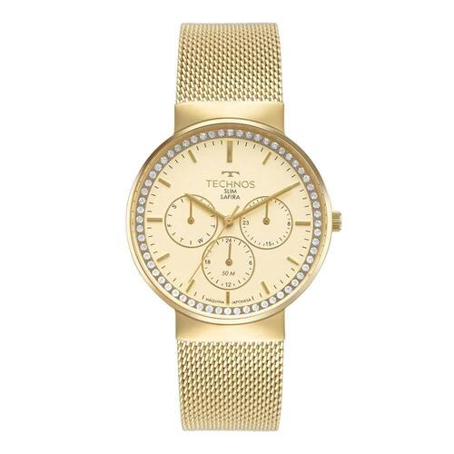Com design minimalista, a linha Slim reinventa o conceito clássico da simplicidade para apresentar seu novo modelo. Seu diferencial está no maquinismo de multifunção que se encontra na primeira vez no SLIM feminino. Caixa feita de aço inoxidável, pulseira de aço em mesh, tamanho da caixa 39mm, mostrador dourado possui resistência de 50 metros e banhos disponíveis nas cor dourado. Produto 100% em aço inoxidável, com máquina quartz Japonesa Miyota e resistência à água de 50 metros
