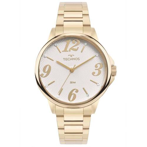 RELÓGIO TECHNOS 2035MWS/1K Linha: Trend Garantia: 12 meses em toda rede autorizada Technos Conteúdo da embalagem: 1 relógio, manual, certificado de garantia Fornecedor: Technos Indústria e Comércio da Amazônia S/A Características Vidro: Cristal Mineral Material da caixa: Aço Cor da caixa: Dourado Material da pulseira: Aço Cor da pulseira: Dourado Diâmetro da caixa: 3,8 cm Mecanismo: Quartz Funções: Analógico Resistência à água: 5 atm Relógio Technos Trend com aplicação de textura em forma de espiral no mostrador de cor prata, pedras aplicadas nos marcadores de hora e numeração arábica diferenciada, com estilo romântico. Produto 100% em aço inoxidável, com banho dourado, máquina quartz japonesa Miyota e resistência à água de 50m. Tamanho de caixa 38mm
