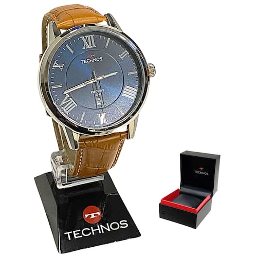 Marca: Technos Modelo: 2115MTXS/0A Tipo de relógio: Analógico Gênero: Masculino Cor da caixa: Prateado Cor da pulseira: Marrom Estilo: Clássico Alarme: Não Cronômetro: Não Calendário: Sim Luz: Não – ponteiros fluorescentes Resistência à água: Sim – 5 ATM = 50 metros Tipo de fecho: Fivela Simples Material da caixa: Aço Material da pulseira: Couro Características do vidro: Vidro mineral Tamanho da caixa: 47 mm Espessura da caixa: 11 mm Comprimento da pulseira: 24 cm Largura da pulseira: 20 mm Tampa do fundo: Rosqueado Peso: 50 Gramas Alimentação: Bateria Garantia do Fabricante: 12 meses Fabricante: Technos da Amazônia Ind e Com S/A