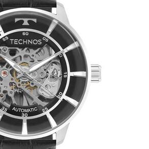 o relógio technos masculino automático - g3265al/0p é um produto de alta qualidade com um design único e refinado. Feito em aço inoxidável, esse relógio apresenta uma caixa com fundo de vidro, que permite visualizar o seu maquinismo automático skeleton no mostrador. Com uma pulseira de couro croco preta, ele oferece resistência à água de até 50 metros. Com um diâmetro de caixa de 46mm, esse relógio possui um mecanismo analógico movido à bateria, garantindo uma precisão no mostrador. O material da caixa é em aço inoxidável na cor prata com borda preta, enquanto o mostrador é prateado, proporcionando um visual elegante. A pulseira desse relógio é feita de couro preto com fecho de fivela, garantindo um ajuste confortável no pulso. Com um tamanho de 22 cm, ela se adapta perfeitamente a diferentes tamanhos de pulso. Com um peso aproximado de 100g, esse relógio é leve e confortável de usar no dia a dia. Possui uma resistência à água de 5 atm, o que significa que ele pode ser utilizado para lavar as mãos e em água corrente, mas não é recomendado para uso em piscinas ou mergulho profundo. O relógio technos masculino automático - g3265al/0p é perfeito para homens que buscam estilo e sofisticação. Com seu design único e refinado, ele combina com diferentes ocasiões, desde eventos formais até o uso diário. Além disso, sua funcionalidade automática garante um funcionamento preciso e confiável. Invista em um relógio de qualidade e estilo. Adquira o relógio technos masculino automático - g3265al/0p e tenha um acessório que irá te acompanhar por muito tempo.