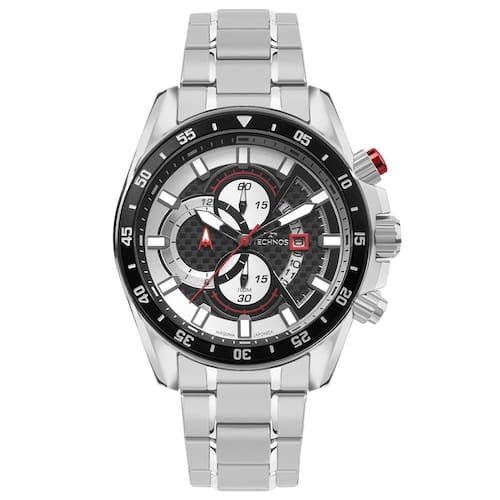 Inspirado no design do universo automobilístico, a linha Carbon apresenta um modelo de estética esportiva inconfundível, com a aplicação de fibra de carbono colorida no mostrador, cronógrafo, botão superior em cor de destaque e aro externo com marcação de minutos. Produto 100% em aço inoxidável, com máquina quartz japonesa Miyota, calendário, cronógrafo e resistência à água de até 100 metros.