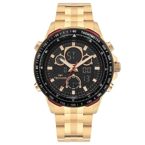 Relógio Technos Masculino Digitech Dourado - Bj4130aa/1p Relógio Technos Digitech traz um novo lançamento design robusto, com embalagem especial. O relógio conta com maquinismo anadigi, cronógrafo e detalhes de cor no aro externo, além de marcadores de hora em indexes. Produto 100% em aço inoxidável, banhado em dourado, com pulseira de aço em 3 links, e resistência à água de 100 metros. Banho - Dourado Tipo - Ana Digi Cor da Caixa - Dourado Material da Pulseira - Aço Material da Caixa - Aço Formato - Redondo Cor do Mostrador - Preto Tipo de Fecho - Trava de Segurança Garantia - 12 meses Cor da Pulseira - Dourado Largura da Caixa (cm) - 4,9 Resistência à Água - 10 ATM Cor - Dourado Tamanho - Grande Gênero - Masculino
