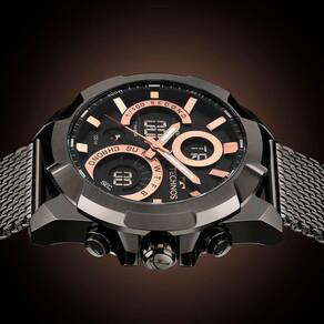 Modelo_ML W23721AAB/1P Relógio Technos Masculino Digiana Grafite com Pulseira de Aço Inoxidável Tela Analógica-Digital e Caixa com 48 mm na cor Grafite Fundo Rosqueado à Prova D'água até 100 Metros Presente para Dia dos Pais Mães Namorados Natal