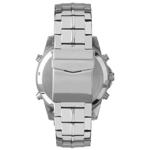 Relógio Technos DigiTech, apresenta caixa robusta e aro externo trabalhado com relevos. Ele possui um design moderno, unindo os maquinismos analógico e digital em um só relógio. Seu mostrador na cor grafite, rico em detalhes, conta com números grandes nas posições de 5/15/25/35/45/55 minutos. Pulseira de aço 100% inoxidável em 3 links, banhado em prata, com máquina anadigi, lente abaulada, marcações de fácil leitura e resistência à água de 100 metros. Gênero: Masculino Banho: Prata Tipo: Cronógrafo Cor da Caixa: Prata Material da Pulseira: Aço Formato: Redondo Tipo de Fecho: Trava de Segurança : 12 meses Cor da Pulseira: Prata Largura da Caixa cm : 4,8 Resistência à Água: 10 ATM Marca: Não Informado
