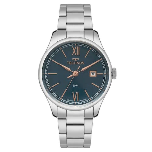 Relógio Technos Executive com design clássico e elegante numeração romana nas posições de 6 e 12 horas. Ele ainda apresenta a sofisticada lente com acabamento abaulado. Produto 100% em aço inoxidável, com máquina quartz japonesa Miyota, calendário e resistência à água de 50 metros.