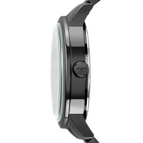 A pulseira em aço inox com banho preto complementa o design arrojado e elegante, sendo ideal para homens modernos que gostam de acessórios robustos e funcionais.