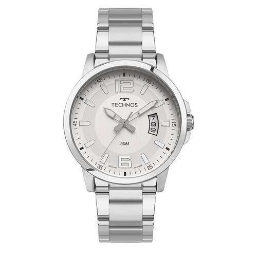 Relógio Technos Racer com design esportivo atemporal. Seu mostrador de fácil leitura conta com números grandes nas posições de 6 e 12 horas e aro interno com marcações dos minutos. Produto 100% em aço inoxidável, com máquina quartz japonesa Miyota, calendário e resistência à água de 50 metros.