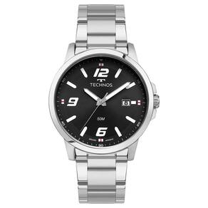 Relógio Technos Racer com design esportivo atemporal. Seu mostrador de fácil leitura conta com números grandes nas posições de 6/9/12 horas e aro interno com marcações dos minutos. Produto 100% em aço inoxidável, com máquina quartz japonesa Miyota, calendário e resistência à água de 50 metros