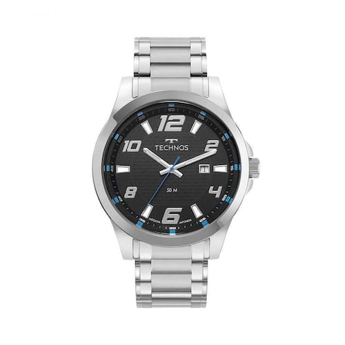 Relógio Technos Racer apresenta seu novo lançamento de design esportivo, que conta com mostrador de fácil leitura na cor preto com numeração arábica, detalhes em cores de destaque e analógico com data na posição de 3 horas. Produto 100% em aço inoxidável, banhado em prata, com resistência à água de 50 metros e pulseira de aço inoxidável em 3 links.