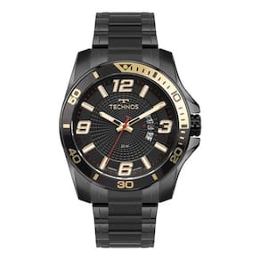 Gênero: Masculino Banho: Preto Tipo: Analógico Cor da Caixa: Preto Material da Pulseira: Aço Formato: Redondo Tipo de Fecho: Trava Lateral : 12 meses Cor da Pulseira: Preto Largura da Caixa cm : 4,6 Resistência à Água: 5 ATM Relógio Technos Racer apresenta seu mais novo lançamento, de design esportivo, com aro trabalhado com detalhes de cor e design, e mostrador texturizado de fácil leitura na cor champanhe com numeração arábica, detalhes cores em destaque e calendário, além de contar com pulseira de aço em 3 links. Produto 100% em aço inoxidável, banhado em preto, com máquina quartz japonesa Miyota e resistência à água de 50 metros.