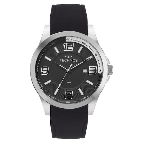Relógio Technos Masculino Ref: 2115tyu/2p Racer Prateado Descrição do Produto: Caixa de Aço Pulseira de Silicone Preta Fundo Rosqueado Resistente à Água 5 Atm Diâmetro / Largura da Caixa: 45.00 MM Funções: Analógico, Calendário Alimentação do Maquinário: Bateria Mostrador preto com Números e detalhes em branco Maquinário Japonês de 1 Ano Marca: Não Informado