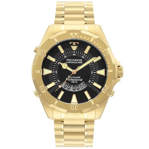 Relógio Technos Masculino Skydiver Dourado - Wt205fl/4p Wt205fl/4p Relógio Technos Masculino, com caixa e pulseira de aço dourado, e aro giratório. O ícone Skydiver chega em uma versão com caixa de 48mm. Resistente à água em 150 metros. Banho - Dourado Tipo - Ana Digi Cor da Caixa - Dourado Material da Pulseira - Aço Formato - Redondo Cor do Mostrador - Preto Tipo de Fecho - Trava de Garantia - 12 meses Cor da Pulseira - Dourado Largura da Caixa (cm) - 4,8 Resistência à Água - 15 ATM meli_title - Relógio Masculino Technos Skydiver Dourado De Fábrica Modelo_ML - WT205FL/4P Relógio Technos Masculino Skydiver Dourado com Pulseira de Aço Inoxidável Tela Analógica-Digital e Caixa com 48 mm na cor Dourado Fundo 0 à Prova D'água até 150 Metros Presente para Dia dos Pais Mães Namorados Natal Cor - Dourado Tamanho - Grande Gênero - Masculino Ean: 7891530696077