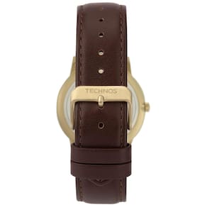 Relógio Technos Slim com design minimalista, reinventando o conceito clássico da simplicidade. Seu diferencial está na construção da caixa, fina e sofisticada, e mostrador minimalista, com assinatura de linha e símbolo T da marca na posição de 12h. Com o vidro de safira, é um relógio que, além de ser leve e confortável em qualquer pulso, entrega alta resistência a riscos e arranhões. Produto 100% em aço inoxidável em banho dourado, com pulseira de couro na cor marrom, máquina quartz Japonesa Miyota, calendário e resistência à água de 50m. Tamanho de caixa 42mm.