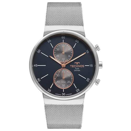 O relógio Technos VD36AB/1A une sofisticação e modernidade em um design slim e versátil, ideal para homens que buscam estilo e funcionalidade no dia a dia. Com caixa de 40mm em aço inox e pulseira mesh prata, o modelo destaca-se pelo acabamento refinado e pelo mostrador azul com subdials funcionais em tom grafite.
