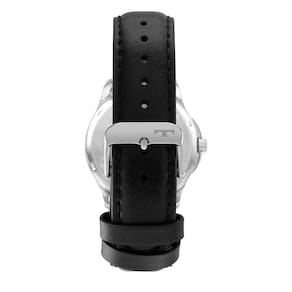 Vidro: Cristal Mineral Material da caixa: Aço Cor da caixa: Prata Material da pulseira: Couro Cor da pulseira: Preto Diâmetro da caixa: 4,0 cm Mecanismo: Quartz Funções: Analógico / Calendário Resistência à água 5 atm
