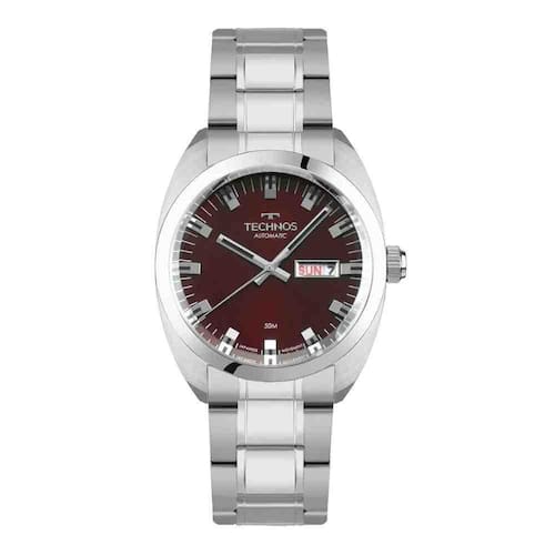 Estamos há mais de 50 anos no mercado oferecendo uma ampla variedade de acessórios, incluindo relógios e óculos de sol, com as melhores marcas e estilos. Além disso, a nossa equipe é treinada para oferecer um atendimento excepcional, garantindo que cada cliente seja tratado com o respeito e a atenção que merece.Realizando a compra, não deixe de nos avaliar Sua opinião é muito importante para aperfeiçoar cada vez mais o nosso trabalho.ESPECIFICAÇÕES TÉCNICAS- Marca: Technos- Referência: 8205OV/1R- Gênero: Masculino - Tipo de mostrador: Analógico - Tipo de movimento: Automático - Função: Calendário duplo- Tipo de fecho: Trava lateral- Cor da caixa: Prata- Cor do mostrador: Marrom- Cor da pulseira: Prata- Material da caixa: Metal- Material da pulseira: Couro - Largura da caixa: 4cm- Resistência à água: 5 ATM 50m - : 12 meses