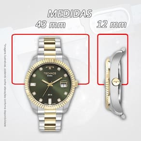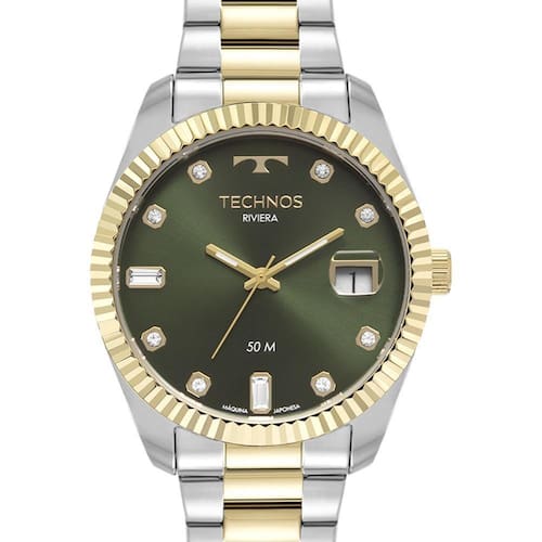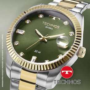 Relógio Technos Riviera Bicolor Unissex 2415DV 1V Cor Prata e douradoMostrador VerdeFormato RedondoTipo de Tela AnalógicoResistência 50 metrosCalendário SimMaterial do Vidro Cristal MineralMaterial da Caixa AçoMaterial da Pulseira AçoTamanho da Caixa 43 mEspessura da Caixa 12 mmTamanho da Pulseira 22 cmPeso 138 g Porque você deve comprar conoscoSomo uma empresa que atua há 9 anos no mercado, oferecendo os melhores produtos e preços, sempre com muita elegância e sofisticação para a satisfação de cada cliente.Estamos à disposição.Atenciosamente.