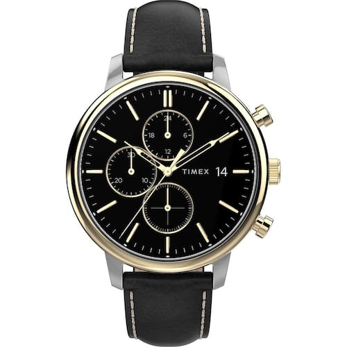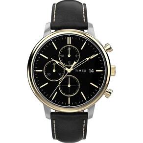 Timex Relógio masculino Chicago Chronograph 45 mm, Preto/Dois Tons, Cronógrafo