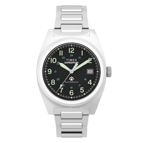 Relógio Timex Expedition Capstone Automatic TW2Y39600 O Relógio Timex Expedition Capstone Automatic TW2Y39600 construído todo em aço inoxidável oferecendo um ajuste excelente ao pulso com uma caixa de 39 mm de diâmetro. Inspirado por aqueles que valorizam a preservação do nosso planeta, o novo Expedition Capstone Automatic é equipado com recursos ecologicamente corretos: movimento automático, caixa resistente e pulseira confortável. Esta coleção combina sustentabilidade com estilo, apresentando uma caixa substancial de 39mm com design inspirado em mergulho. O mostrador preto com padrões náuticos inclui calendário, ponteiros e marcadores de horas, além de uma classificação de resistência à água de 100 metros. Especificações Técnicas Mecanismo: Automático Miyota com reserva de marcha de 40h. Gênero: Masculino Visor: Preto Vidro: cristal safira com tratamento antirreflexo Funções: calendário, ponteiros fosforescentes. Prova d'água: 100m Características: caixa e pulseira em aço inoxidável Diâmetro da caixa: 39 mm Largura da Pulseira: 20 mm : 1 ano pelo fabricante Timex Marca: Não Informado