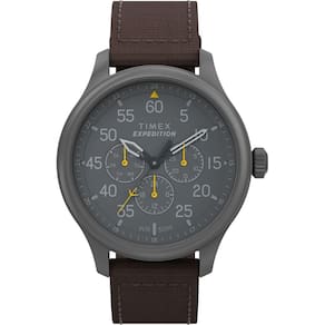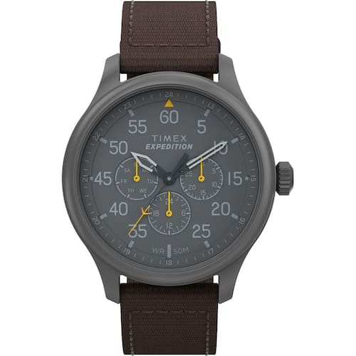 Relógio masculino Timex Expedition Field de 43 mm - Pulseira marrom com mostrador preto Caixa de bronze - Caixa de bronze de 43 mm - pulseira marrom de 8 polegadas - Mostrador preto - Lente de vidro mineral - Resistente à água até 50 metros