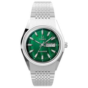 Relógio Timex Falcon Eye Day Date TW2U95400 Seguindo os passos da nossa reedição do Timex 1979, o Timex Falcon Eye adiciona um toque de sofisticação à nossa linha Timex. Reeditado para os dias de hoje, recriamos cada detalhe. O resultado é um relógio refinado que mantém toda a alma e o caráter da era que o inspirou. Nesta temporada, ele chega com um mostrador verde vibrante combinado ao acabamento em aço inoxidável - marcante o suficiente para deixar qualquer um verde de inveja. Falcon Eye faz a referência ao impressionante mostrador Côtes de Genve que rouba a cena, revelando um jogo único de texturas onduladas a cada movimento do seu pulso. Especificações Técnicas Mecanismo: Quartzo bateria Gênero: Masculino Visor: Verde com efeito sunburst Vidro: Plexiglass abaulado Funções: calendário day date, ponteiros e marcadores fosforescentes. Prova d'água: 50m Características: com caixa e pulseira em aço inoxidável Diâmetro da caixa: 38 mm Largura da Pulseira: 18 mm : 1 ano pelo fabricante Timex Marca: Não Informado