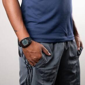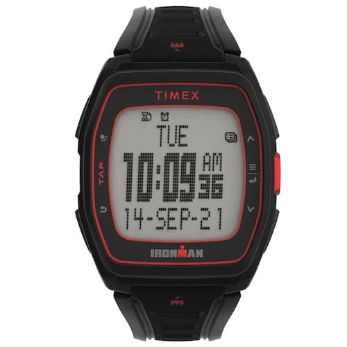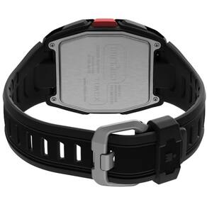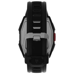 Sua caixa em resina preta com detalhes em vermelho reforça o visual esportivo e moderno, enquanto a pulseira em resina garante conforto e firmeza no pulso mesmo durante movimentos constantes. O mostrador digital amplo facilita a leitura das informações, complementado pela tradicional iluminação INDIGLO, exclusiva da Timex, que permite visualização eficiente em ambientes com pouca luz.