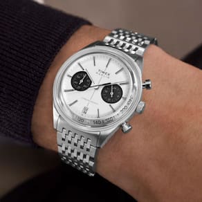 Relógio Marlin Jet Quartz Cronograph TW2Y24600 Panda Uma Nova Abordagem ao Retrofuturismo O novo Marlin Jet Quartz captura os ideais de design futurista dos anos 60 com detalhes discretos e uma elegante caixa de 40mm em aço inoxidável escovado. No entanto, sua característica mais marcante é o cristal abaulado feito de Hesalite uma forma refinada de acrílico, apreciada por sua clareza e facilidade de manutenção, o cristal cobre toda a superfície superior da caixa do relógio, envolvendo o bisel ranhurado com um índice taquimétrico e conferindo uma profundidade cativante à aparência retrofuturista do relógio.O mostrador côncavo prateado apresenta submostradores contrastantes e uma janela de data ao lado do marcador das 6 horas. Completando o visual, uma pulseira de 6 elos em aço inoxidável escovado e polido. Especificações Técnicas Mecanismo: Quartzo Bateria Gênero: Masculino Visor: Prata Vidro: cristal mineral abaulado Funções: Cronógrafo, taquímetro, calendário e tampa rosqueada Prova d'água: 50m Características: caixa e pulseira em aço inoxidável Diâmetro da caixa: 40 mm Largura da Pulseira: 20 mm : 1 ano pelo fabricante Timex Marca: Não Informado