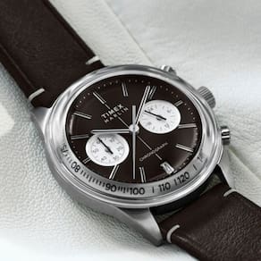 Relógio Marlin Jet Quartz Cronograph TW2Y24700 Couro Uma Nova Abordagem ao Retrofuturismo O novo Marlin Jet Quartz captura os ideais de design futurista dos anos 60 com detalhes discretos e uma elegante caixa de 40mm em aço inoxidável escovado. No entanto, sua característica mais marcante é o cristal abaulado feito de Hesalite uma forma refinada de acrílico, apreciada por sua clareza e facilidade de manutenção, o cristal cobre toda a superfície superior da caixa do relógio, envolvendo o bisel ranhurado com um índice taquimétrico e conferindo uma profundidade cativante à aparência retrofuturista do relógio.O mostrador côncavo prateado apresenta submostradores contrastantes e uma janela de data ao lado do marcador das 6 horas. Completando o visual, uma pulseira de 6 elos em aço inoxidável escovado e polido. Especificações Técnicas Mecanismo: Quartzo Bateria Gênero: Masculino Visor: Prata Vidro: cristal mineral abaulado Funções: Cronógrafo, taquímetro, calendário e tampa rosqueada Prova d'água: 50m Características: caixa em aço inoxidável, pulseira em couro marrom Diâmetro da caixa: 40 mm Largura da Pulseira: 20 mm : 1 ano pelo fabricante Timex Marca: Não Informado